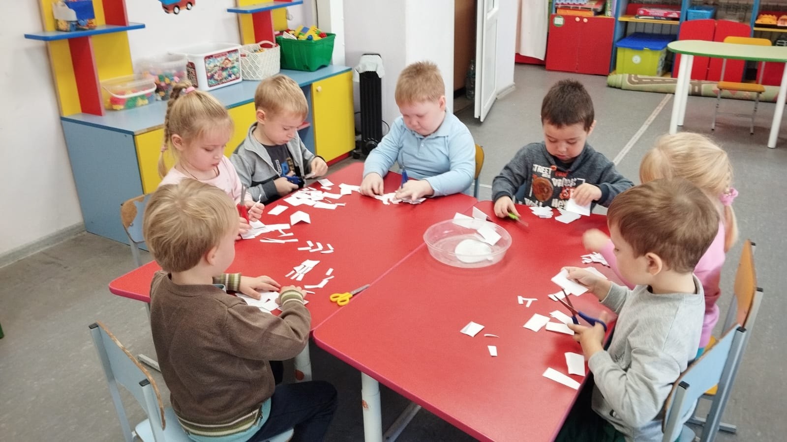 Моделирование из кусочков бумаги "Юные фантазёры" с использованием ножниц.Чтобы правильно резать ножницами, должна происходить одновременно координация левой и правой рук, которые совершают абсолютно разные движения. И дело это не такое уж и легкое, как это кажется взрослым. Резка ножницами требует большой точности и двусторонней координации.В это время интенсивно развивается мелкая моторика ребенка, а вместе с ней и головной мозг.