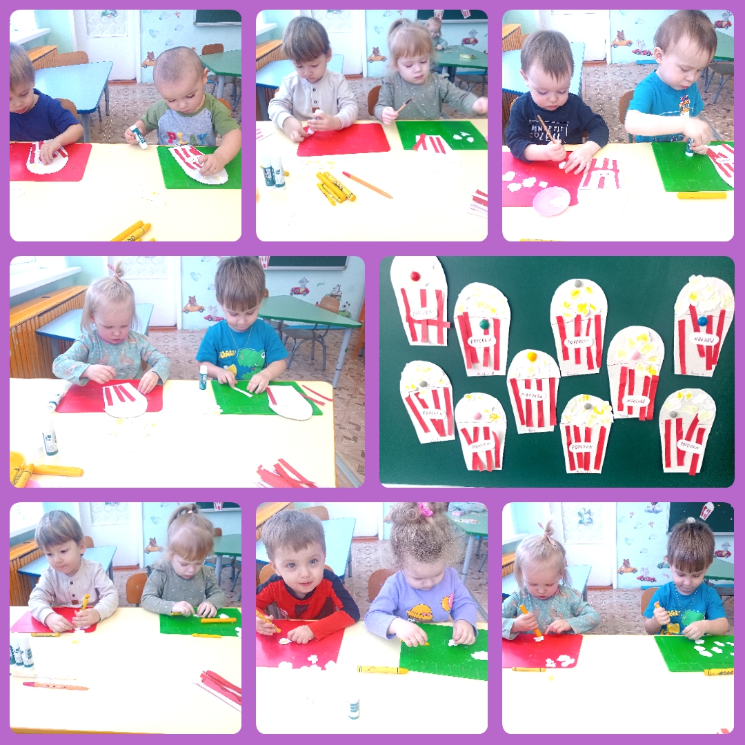 Сегодня, 22 января, у нас особенный праздник — День попкорна! ????В честь этого ребята нашей группы смастерили большие стаканчики с попкорном. Они украшали стаканы яркими красными длинными полосками, раскрашивали попкорн в жёлтый цвет и аккуратно приклеивали его. Благодаря этому у нас получились настоящие чудесные стаканчики с вкусным, сладким попкорном.
